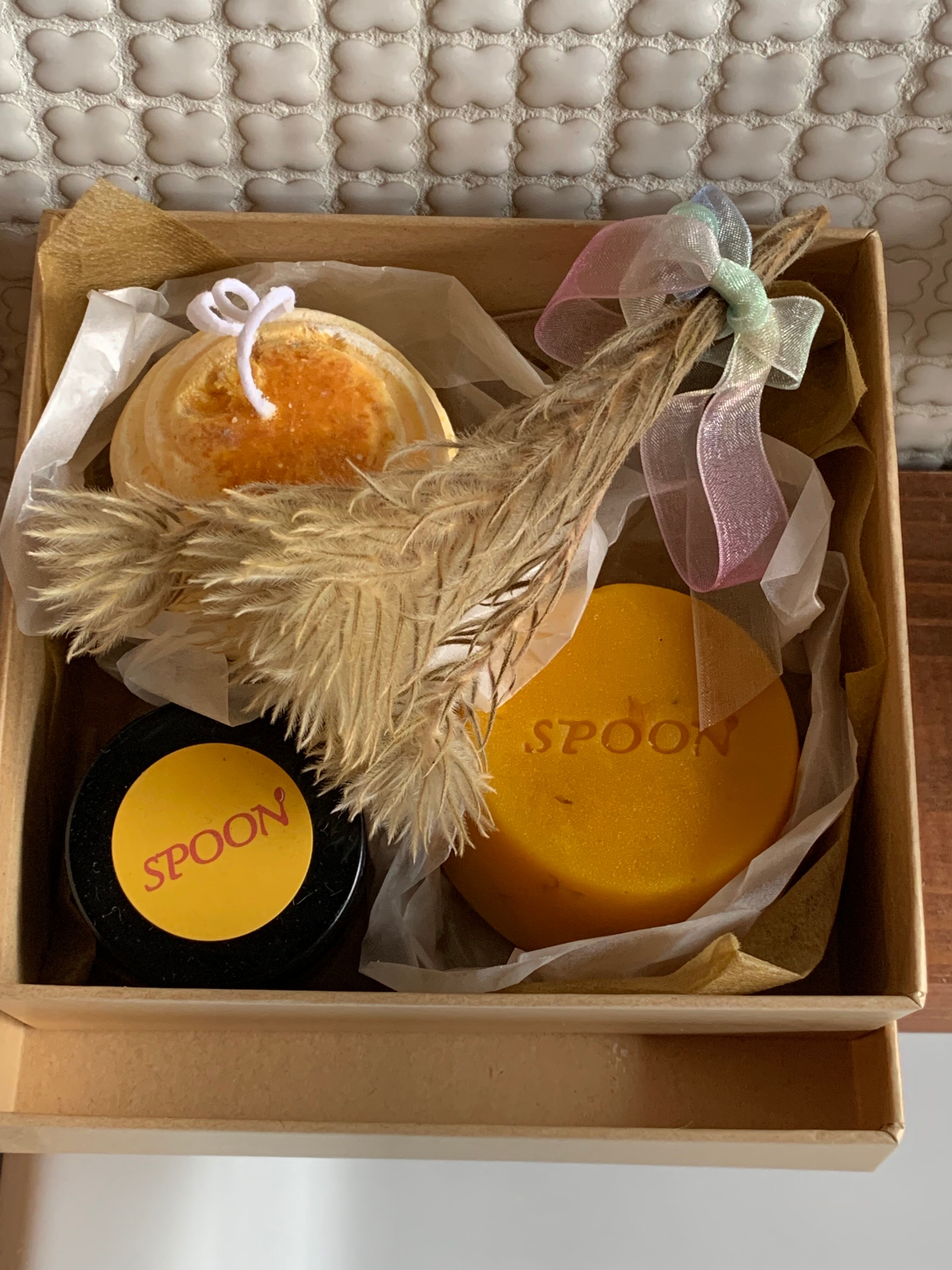 淡路島のカレンデュラを使用したソープとキャンドル、みつろうパームを3点セットに